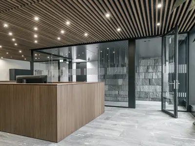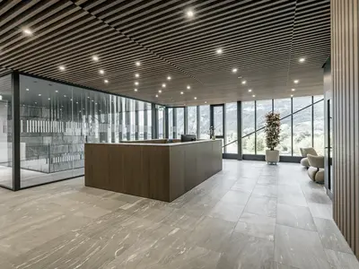 Einscheibenverglasung mit und ohne Brandschutz im gekonnten, modernen Zusammenspiel.